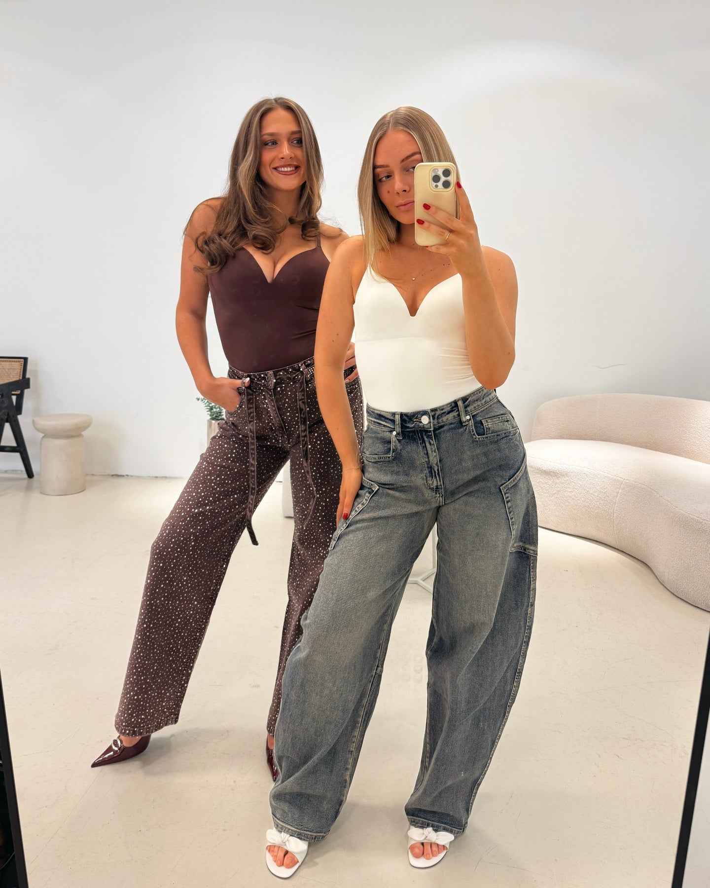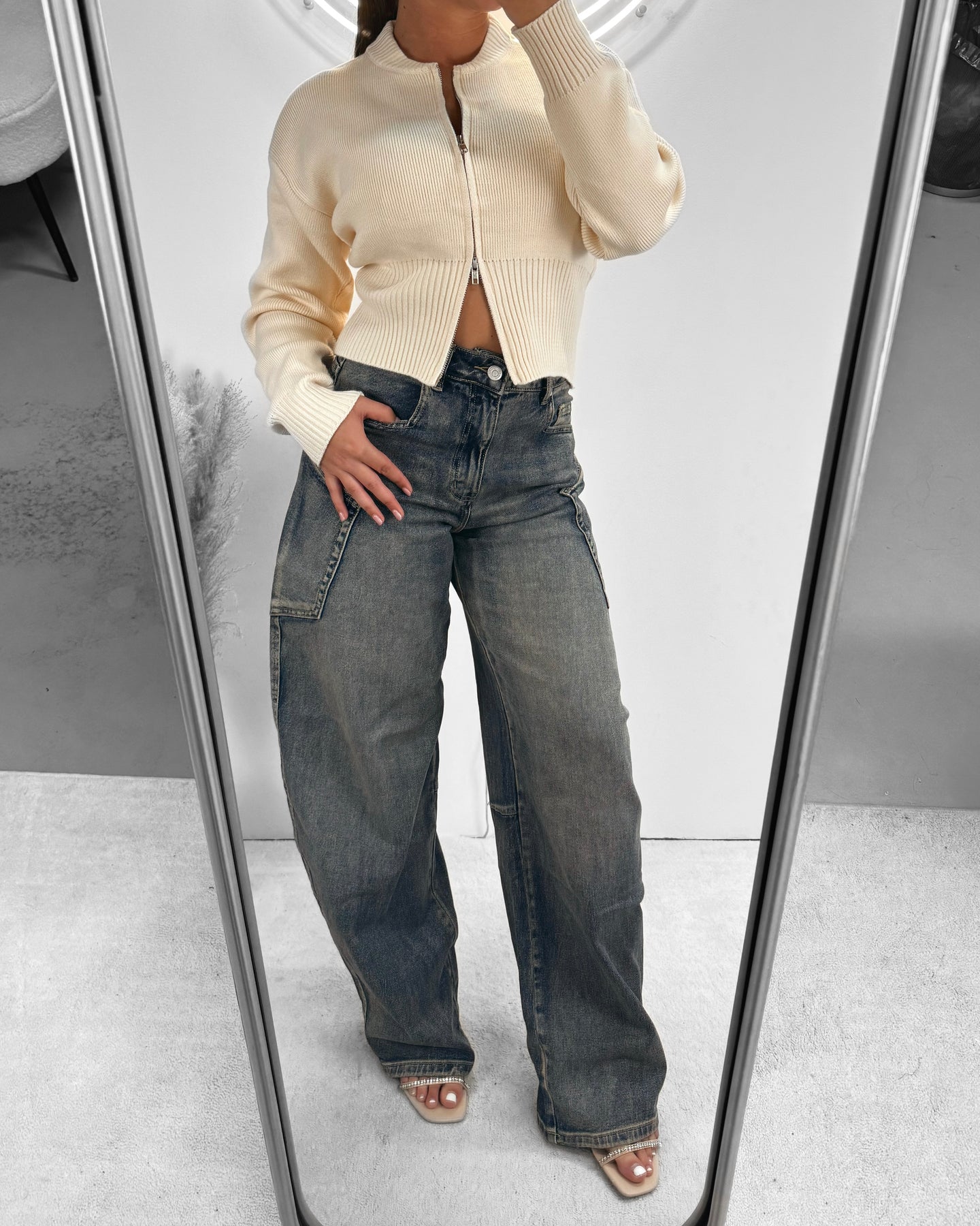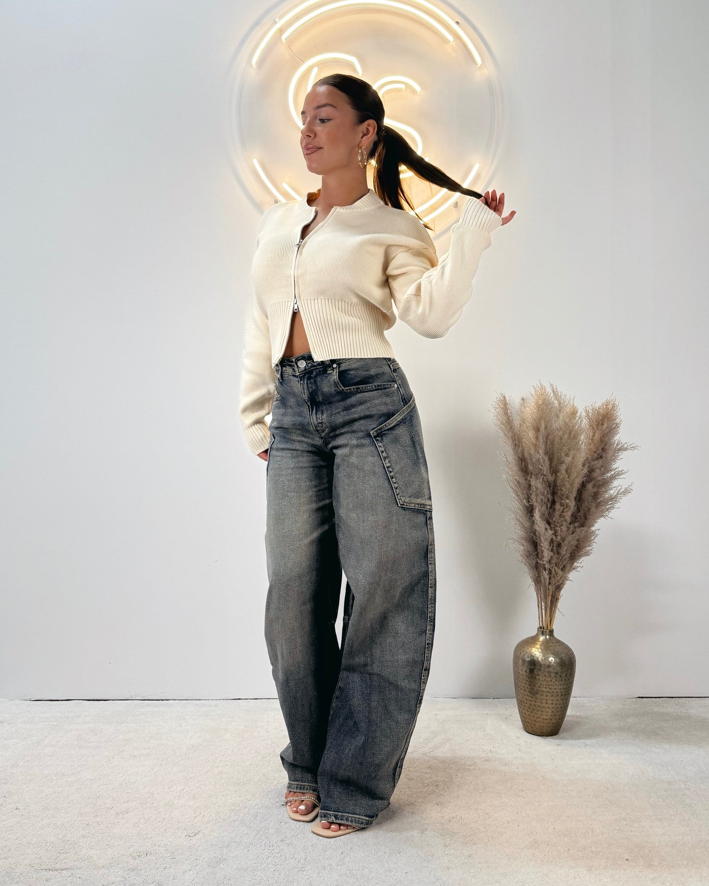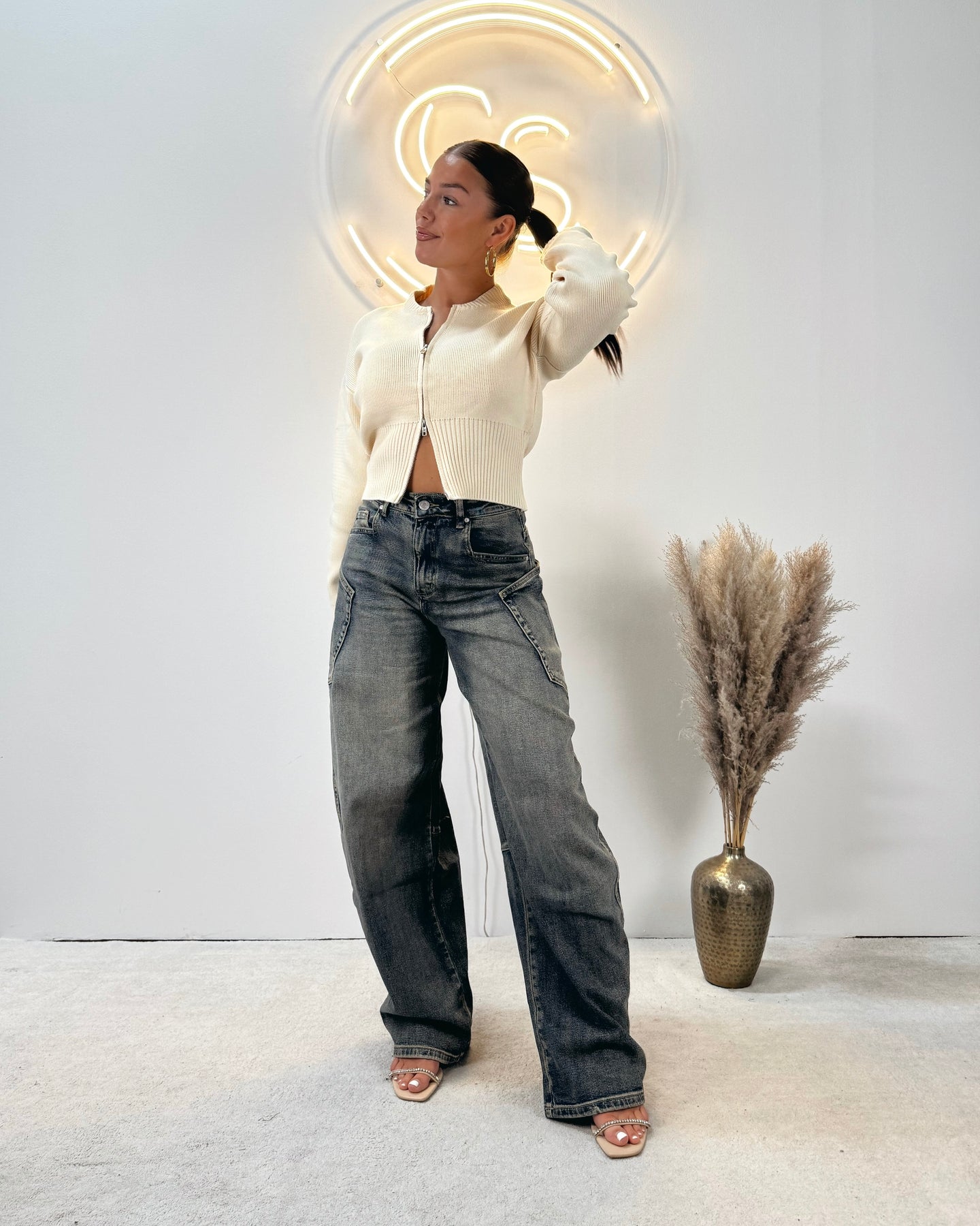Onze Balloon Fit Carpenter Jeans Washed Blue is een echte musthave jeans. Deze jeans heeft een baggy balloon fit en valt high waisted. De jeans heeft trendy details aan de zijkanten. We love it!