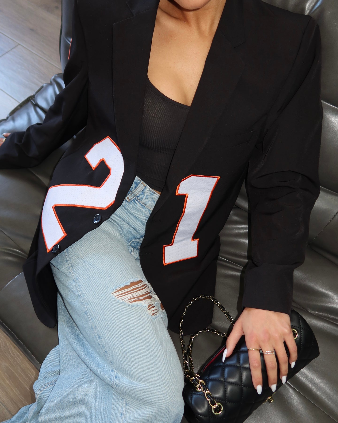 Onze Priority 21 Blazer Black is een unieke blazer gemaakt van premium quality. De blazer heeft de opdruk ‘21’ op de voorkant en heeft een geborduurd signature priority logo in het oranje op de mouw. Deze blazer is een musthave!
