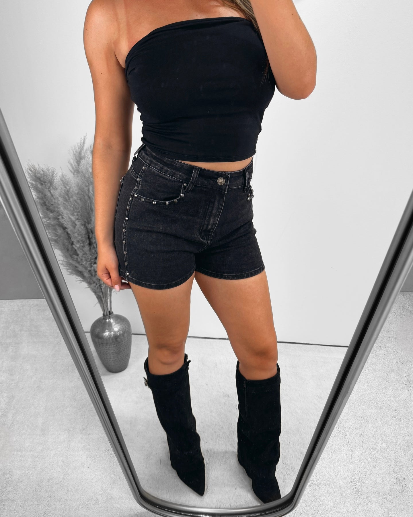 Onze Studs Denim Stretch Shorts is een kort spijkerbroekje met mega leuke studs steentjes. Het broekje bevat veel stretch en valt mooi hoog. Deze shorts zijn perfect voor een festival! Dit item is verkrijgbaar in zwart, blauw en wit.