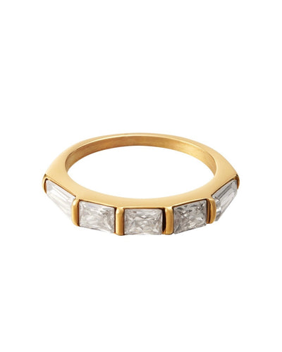 Square zircon stones ring gold