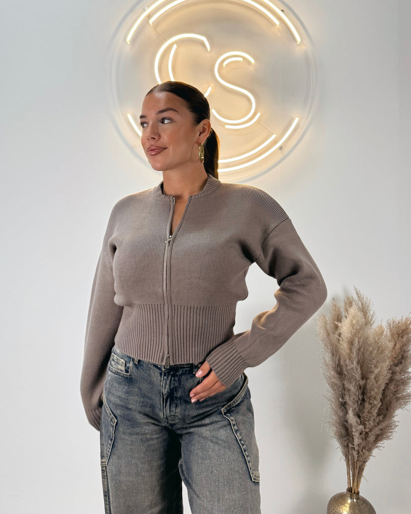 Zipper cardigan taupe