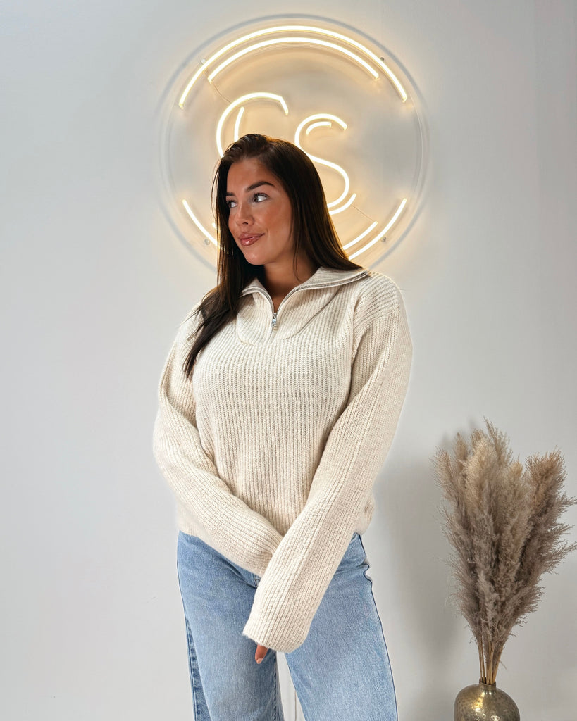 Zipper knit sweater beige