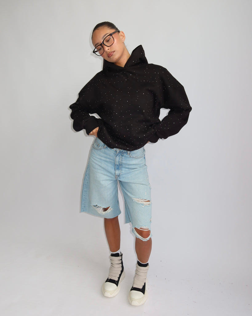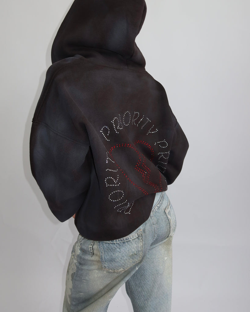 Priority rhinestone hoodie black