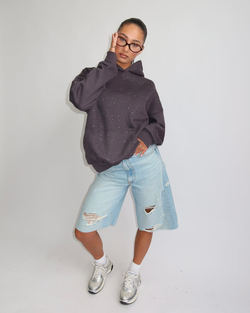 Priority rhinestone hoodie grey
