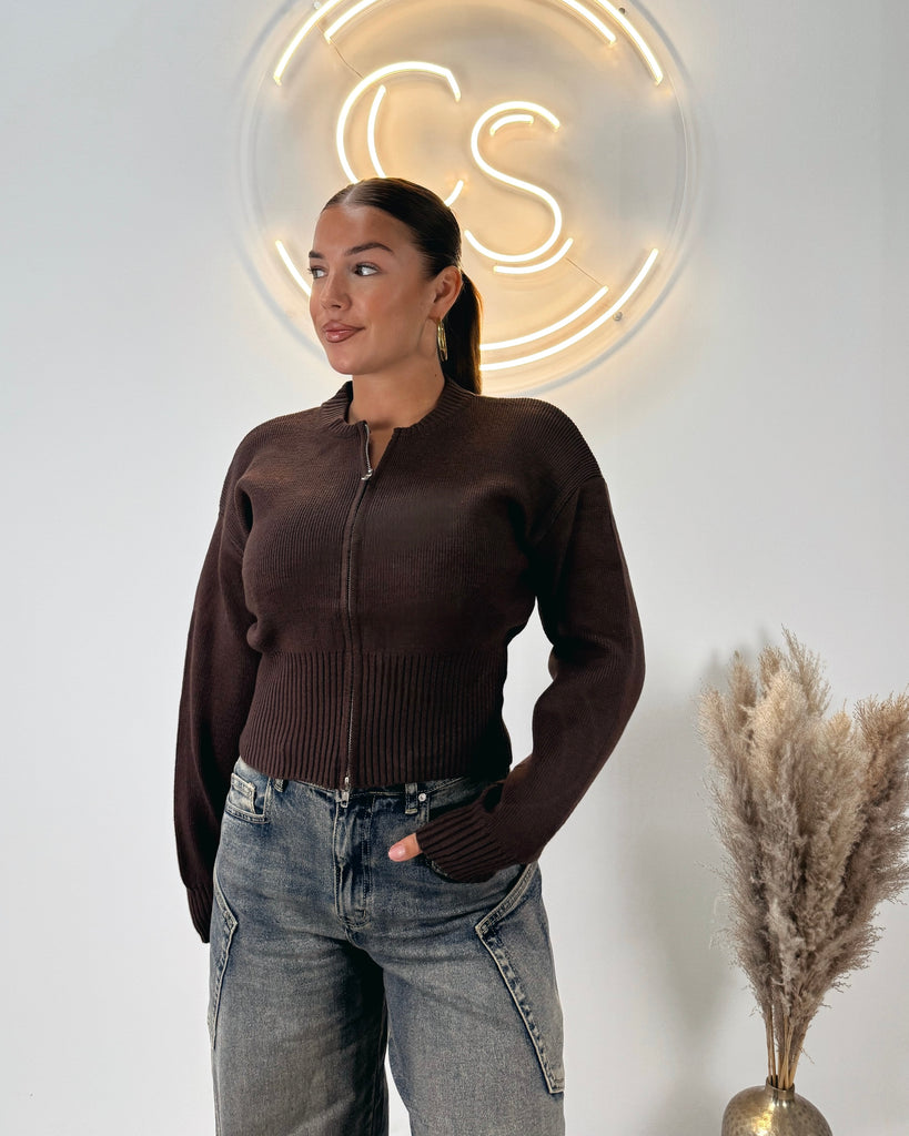 Zipper cardigan brown