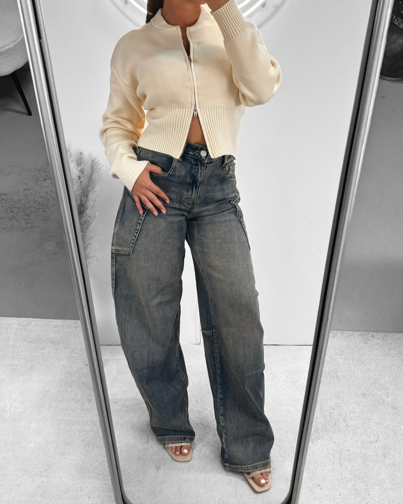 Onze Balloon Fit Carpenter Jeans Washed Blue is een echte musthave jeans. Deze jeans heeft een baggy balloon fit en valt high waisted. De jeans heeft trendy details aan de zijkanten. We love it!