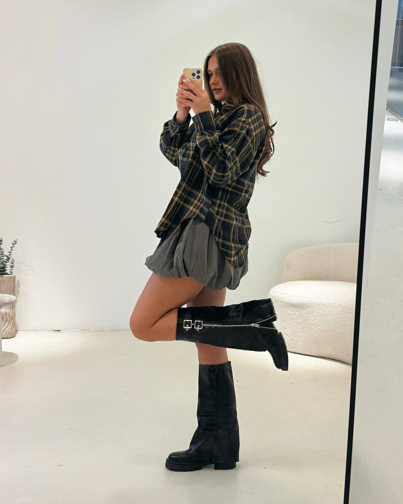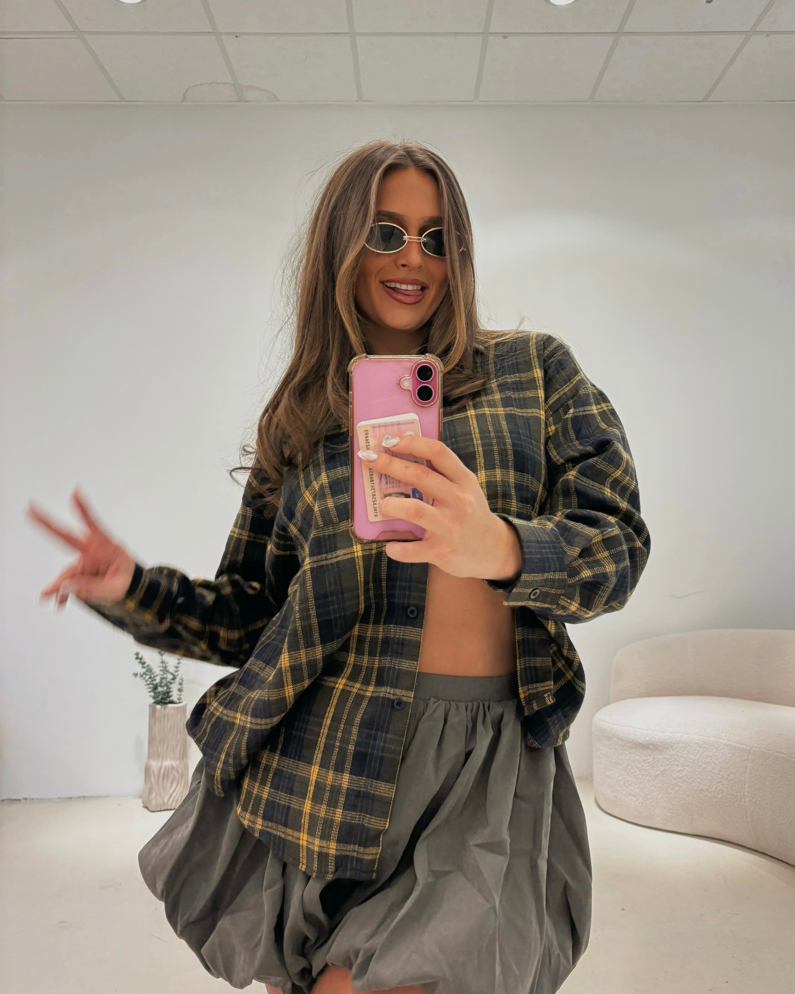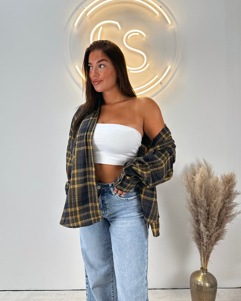 Onze Checks Blouse Yellow is een oversized blouse met een ruitjespatroon. De blouse heeft een gele kleur en valt oversized. Je kan de blouse leuk dicht dragen of open dragen met een crop top eronder!