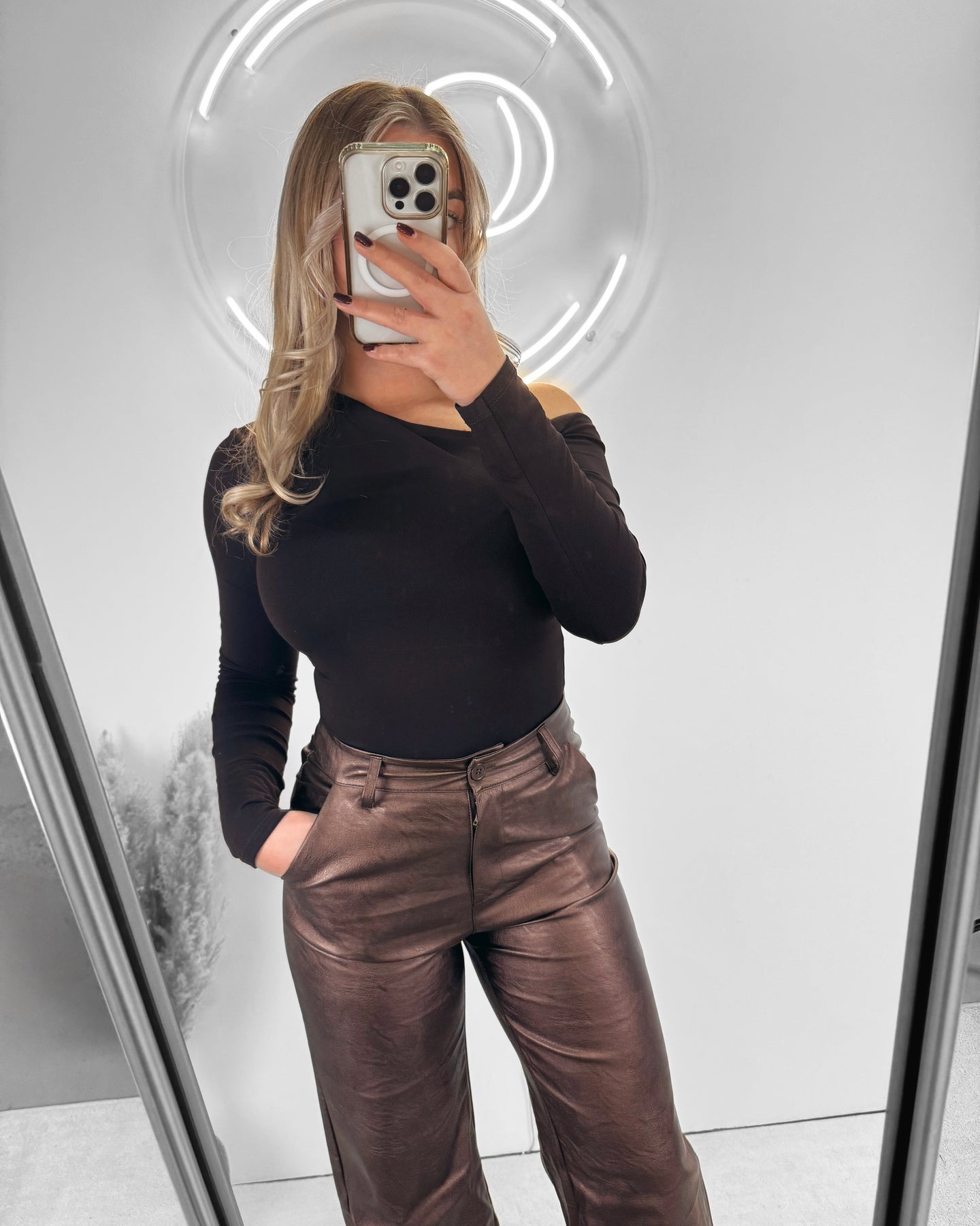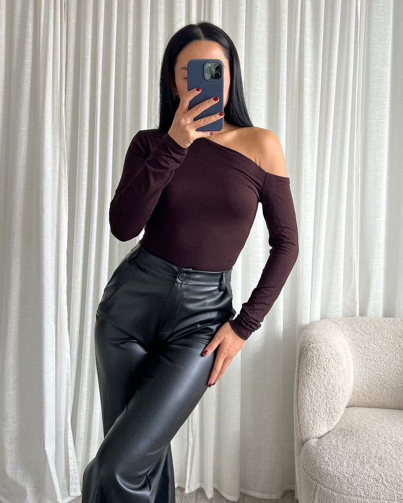Onze Off-shoulder Top is een mooie basic top met een open schouder detail. De top bevat veel stretch en heeft lange mouwen. Combineer deze top met onze items voor een cute outfit! Deze top is verkrijgbaar in het bruin en zwart.
