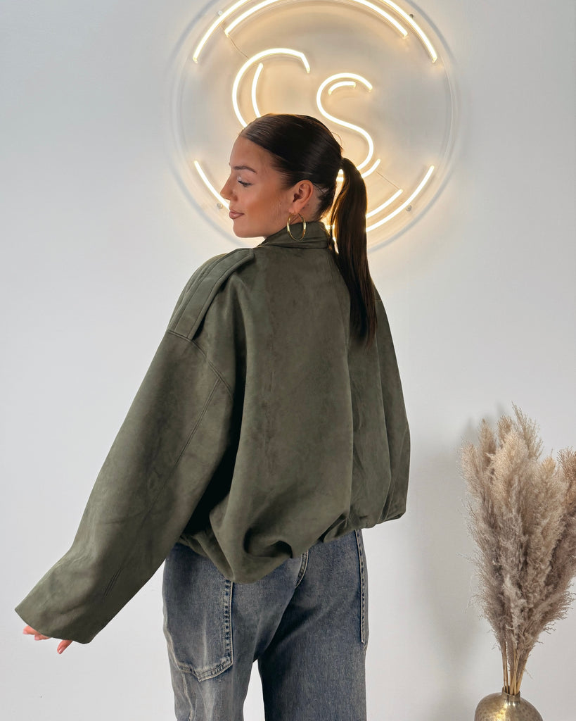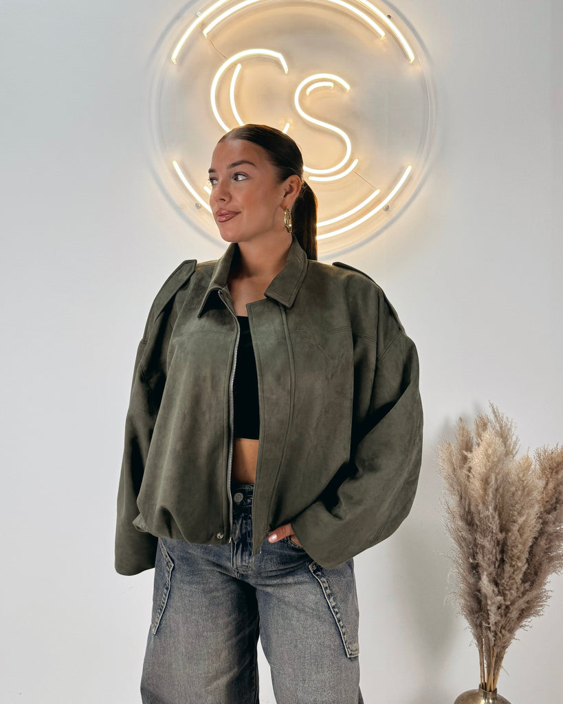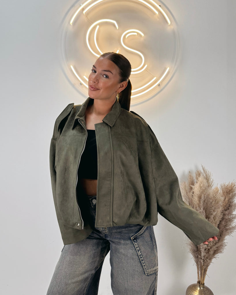 Viral jacket! Onze Suede Jacket is een jasje gemaakt van een zachte suede stof. Dit jasje heeft een rits om te sluiten en heeft een oversized fit. Dit jasje is verkrijgbaar in bordeaux rood, bruin en khaki groen
