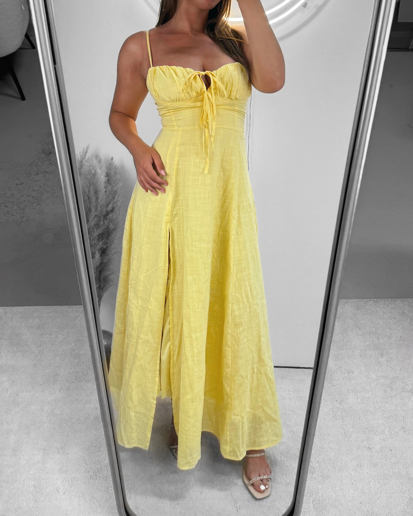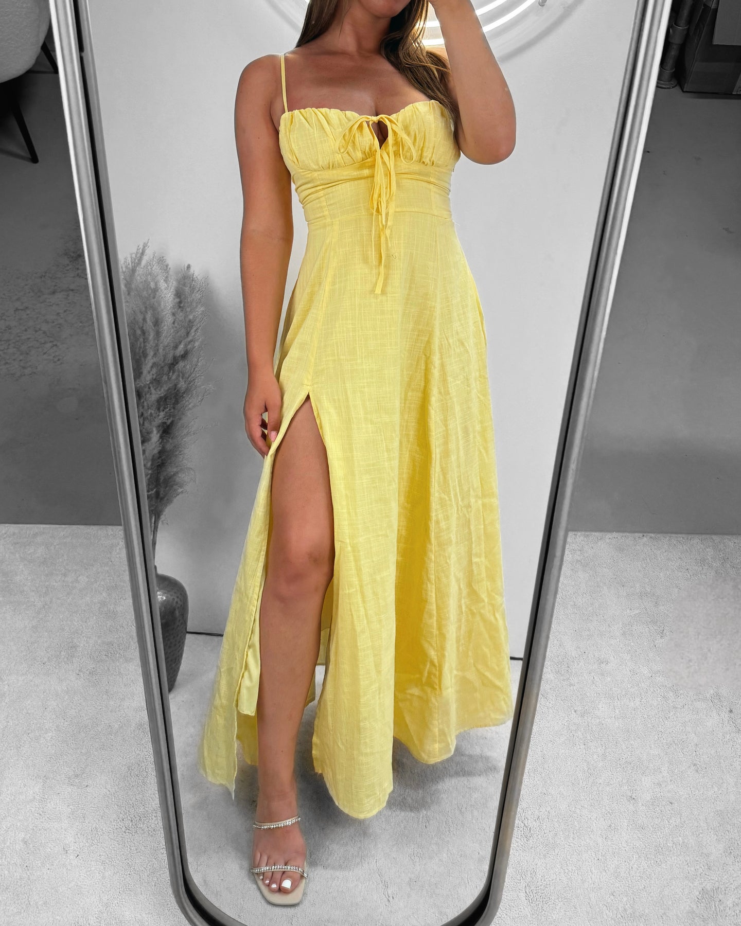 Regular price €49,95 Sale price €24,95 Save 50%Onze Bustier Cotton Maxi Dress is een prachtige lange jurk gemaakt van katoen. De bandjes van de jurk zijn verstelbaar en lopen door in een mooi effect op de rug. De jurk heeft een leuke split en is te sluiten met een ritsje aan de zijkant. De jurk is dubbel gevoerd en schijnt niet door. Dit item is verkrijgbaar in het bruin en geel.