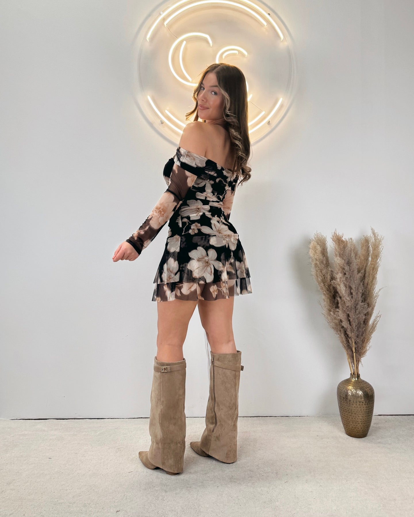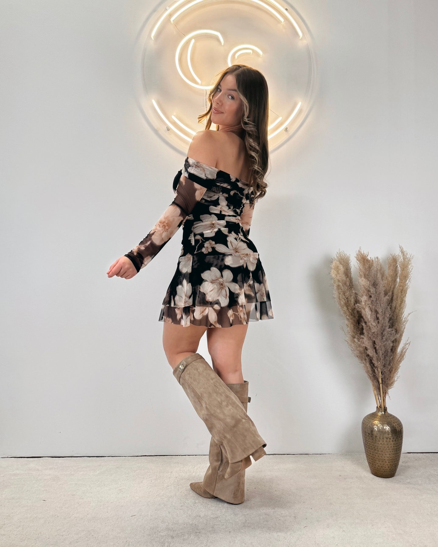 Regular price €37,95 Sale price €9,95 Save 74%Onze Flower Ruffle Dress is een schattig jurkje met een bloemen printje. Perfect voor het aankomende seizoen! De jurk bevat ruffles en heeft off-shoulder mouwen. De jurk bevat veel stretch en heeft een onderjurkje; hierdoor schijnt de jurk dus niet door! Dit item is verkrijgbaar in meerdere kleuren.