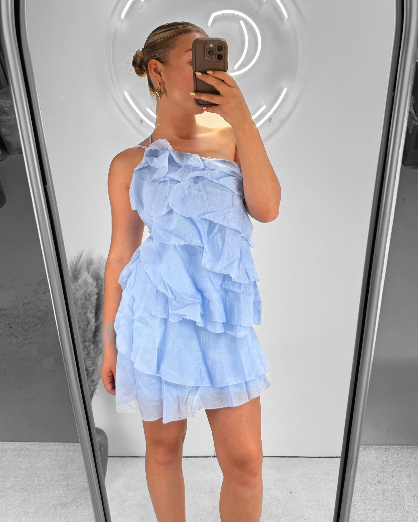 Regular price €44,95 Sale price €24,95 Save 44%Onze Ruffle Dress Blue is echt een plaatje! De jurk is blauw van kleur en heeft ruffles. De bandjes lopen schuin, wat een super leuk effect geeft. De bandjes zijn verstelbaar en de jurk is te sluiten door middel van een rits aan de zijkant. Dit item is verkrijgbaar in meerdere kleuren.
