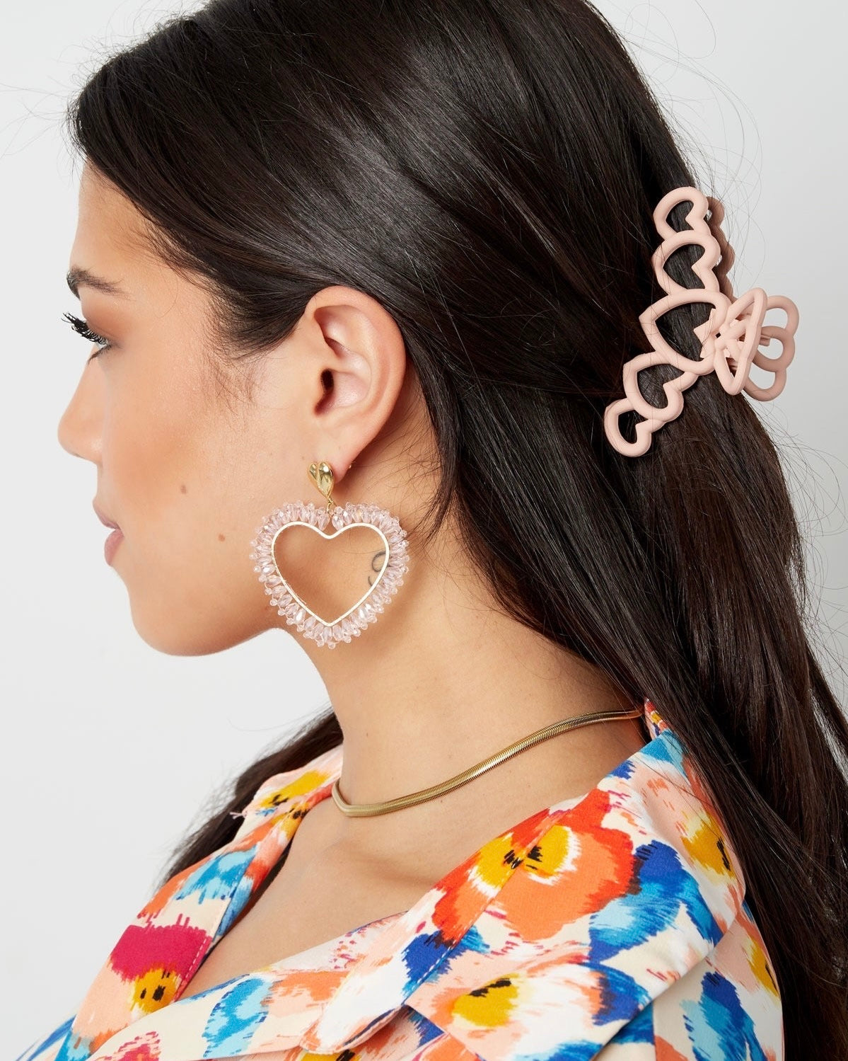 Regular price €3,95Trend alert! Onze Hearts Hair Clip is een vrolijke haarklem in een langwerpige vorm met hartjes. Zo kun je met deze haarklem een gedeelte van je haar of al je haren superleuk opsteken. De haarklem is gemaakt van plastic en heeft een afmeting van 8,8 cm. Dit item is verkrijgbaar in het beige en zwart.