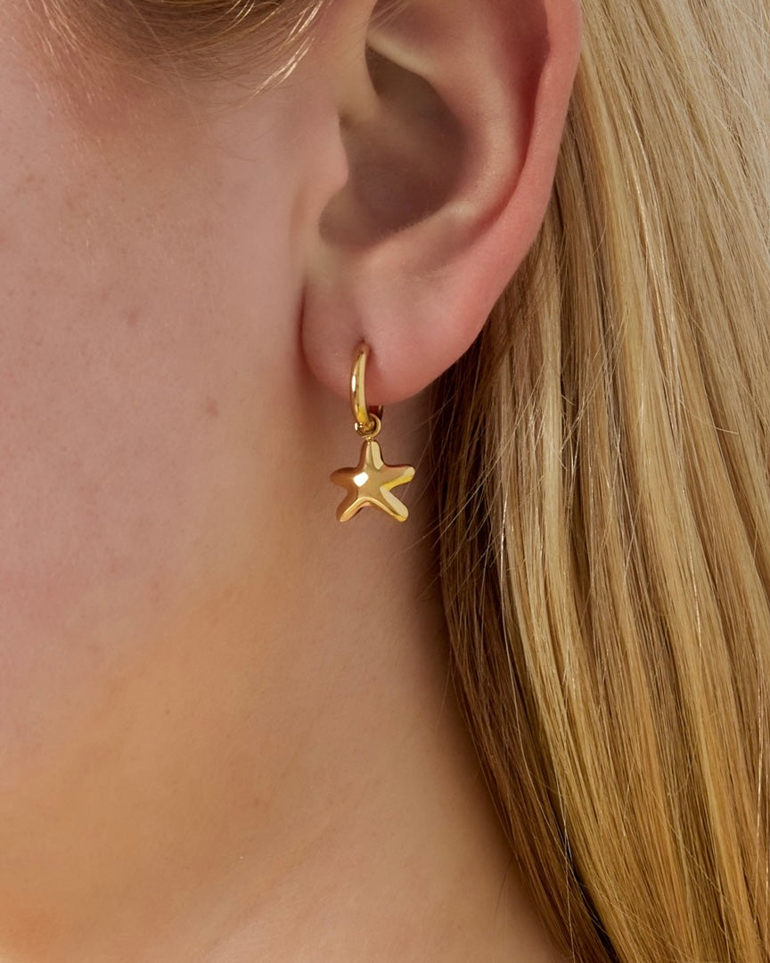 Onze Mini Star Earrings Gold zijn gouden kleine oorringetjes met een kleine ster als bedel. Mega trendy en super leuk om te combineren met onze andere sieraden! De oorbellen zijn gemaakt van roestvrij staal en verkleuren dus niet! Deze oorbellen zijn 100% waterproof.
