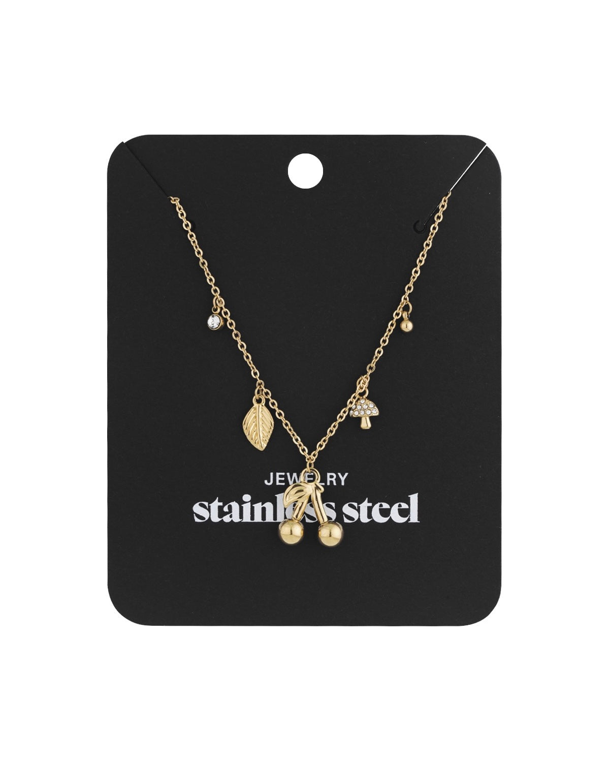 Regular price €19,95Onze Cherry Charm Necklace Gold is een gouden bedel ketting. De ketting bevat vijf trendy bedels. De ketting is gemaakt van roestvrij staal en verkleurt dus niet. De ketting is 100% waterproof.