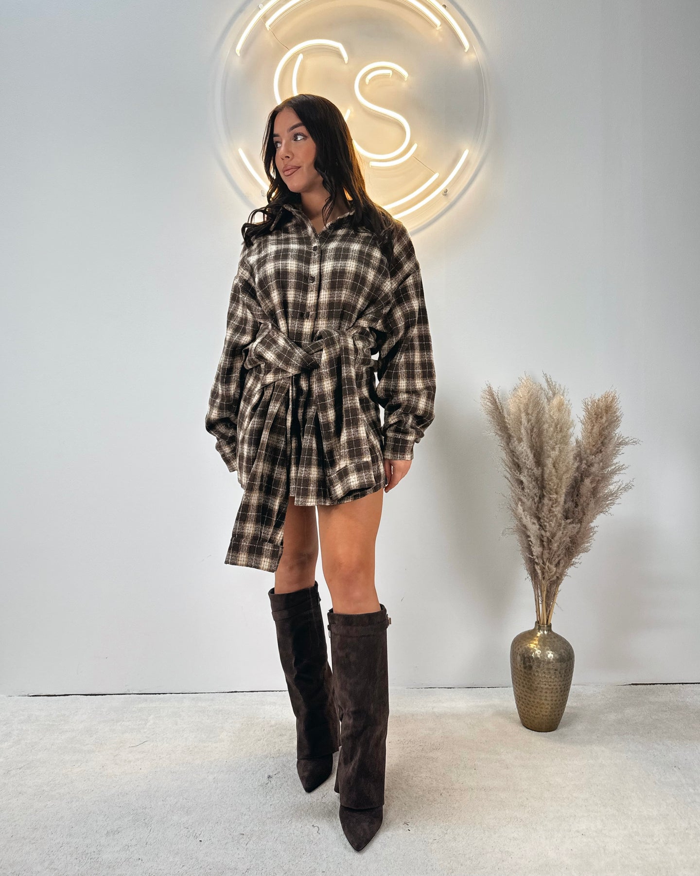 Regular price €49,95Onze Checks Wrap Dress Brown is een mega leuk jurkje met een ruitjespatroon. De jurk kan je extra vast knopen aan de voorkant; wat een leuke touch up geeft! De jurk is gemaakt van een zachte dikke stof. Combineer dit item met leuke boots & you are ready for a night out!