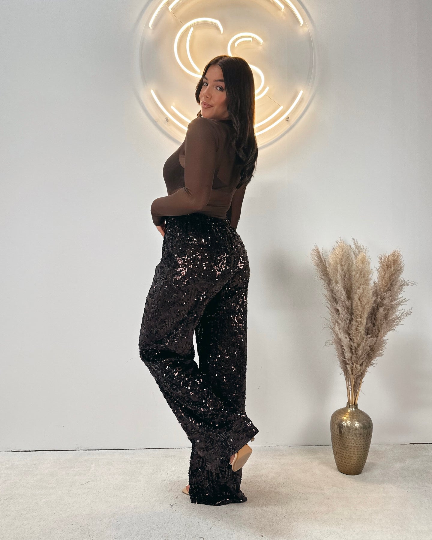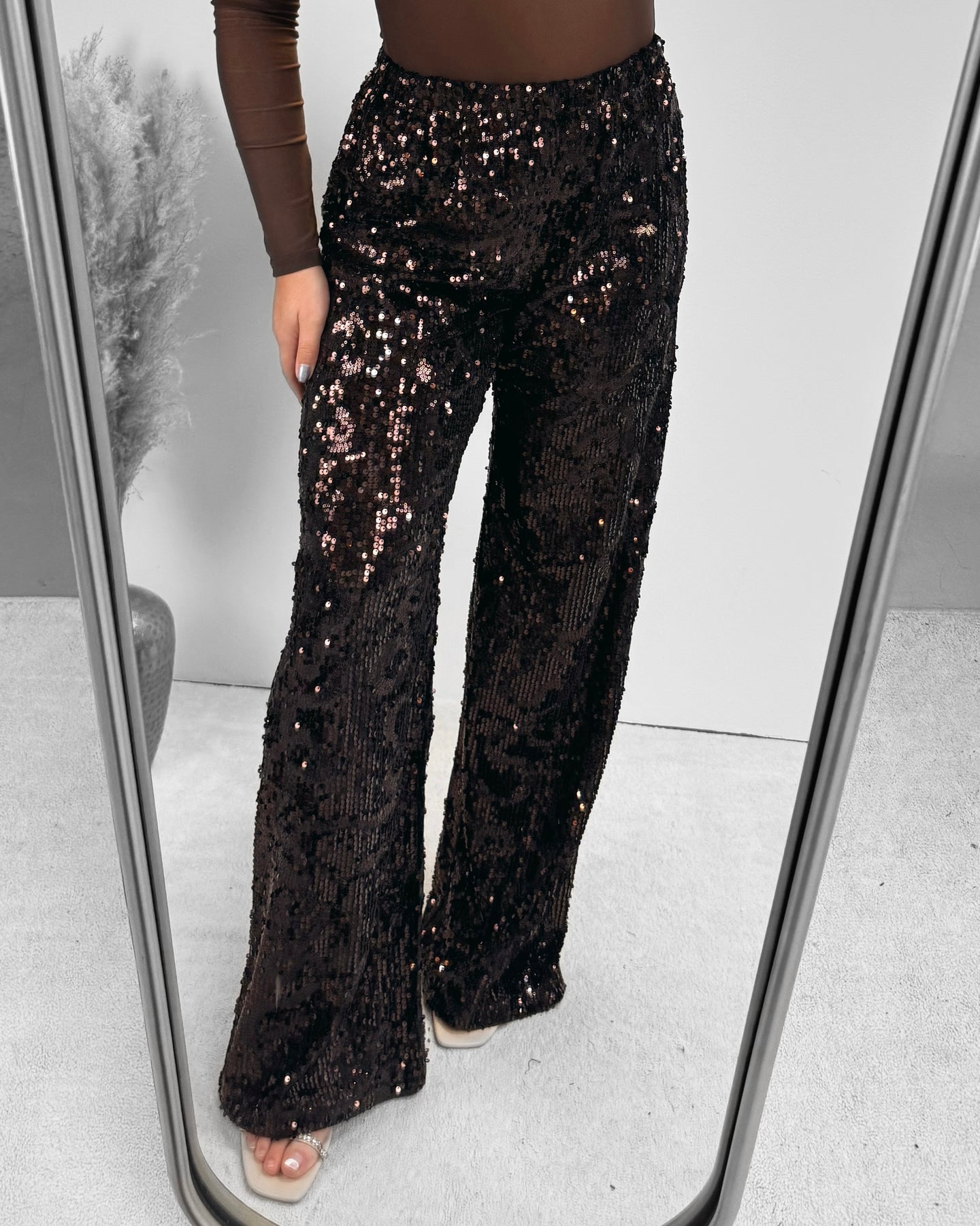 Sequins wide leg pants brown