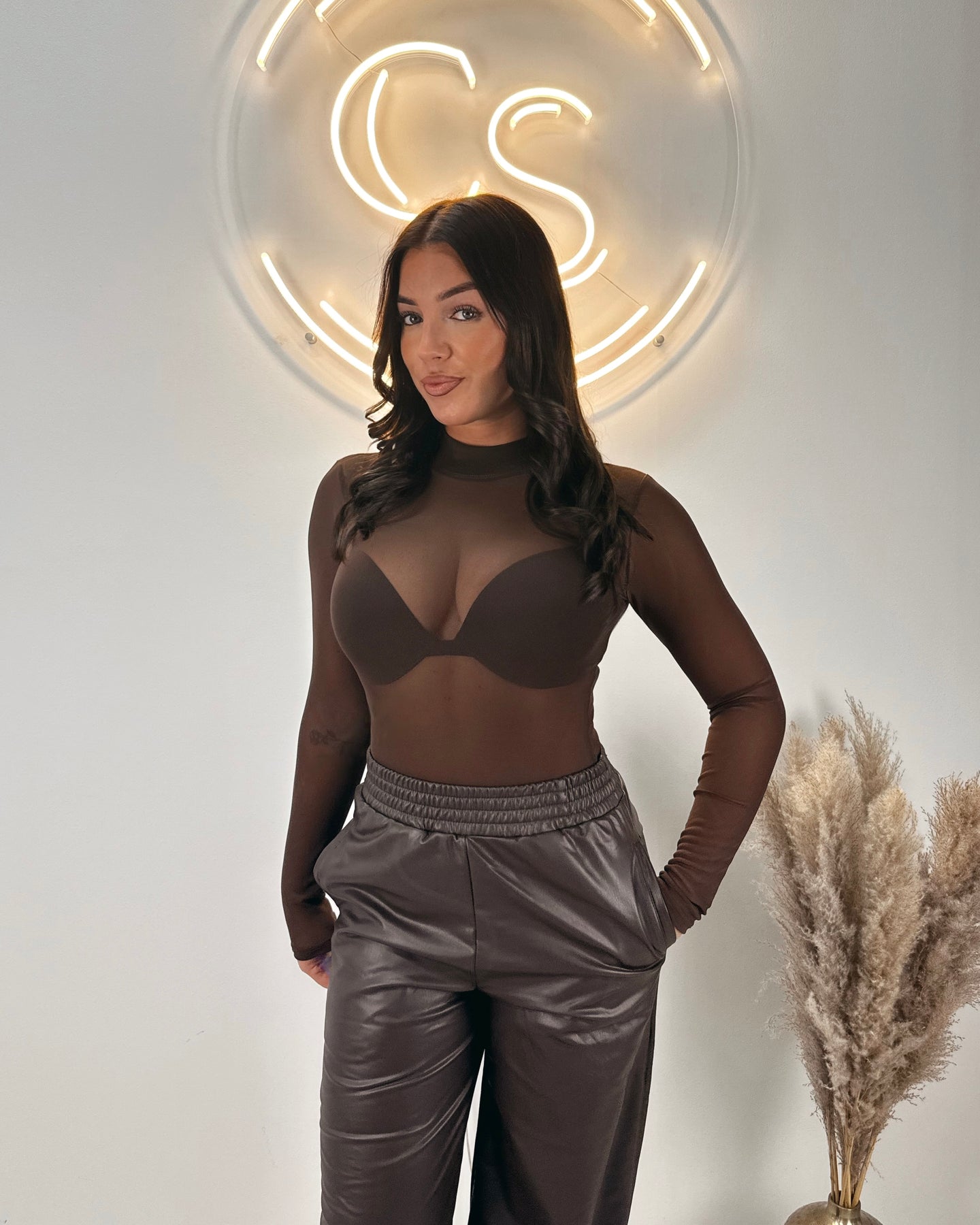 Regular price €24,95Onze Sheer Mesh Bodysuit is een basic doorschijnende body. De body heeft een hoog kraagje en sluit mooi aan. Deze body is perfect te dragen met onze broeken en je kan ‘m mooi afmaken met een blazer! Dit item is verkrijgbaar in het bruin en zwart.
