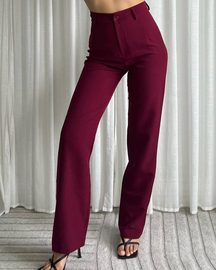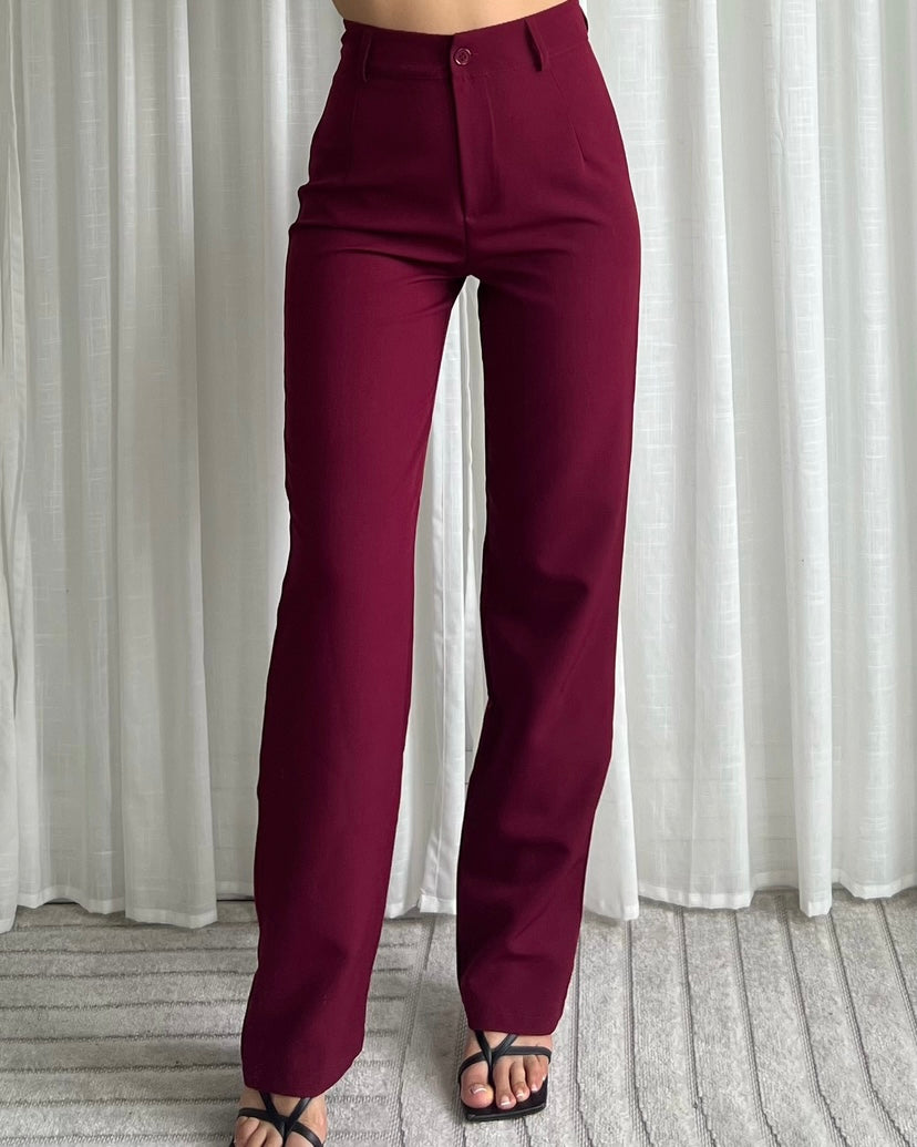 De Straight Leg Trousers is een pantalon met rechte pijpen. De broek valt strak aan de bovenkant en valt mooi high waisted. De broek is te sluiten door middel van een knoop en een rits. De broek bevat stretch. Combineer dit item met onze Split Back Blazer of Diamond Blazer. Dit item is in meerdere kleuren verkrijgbaar.