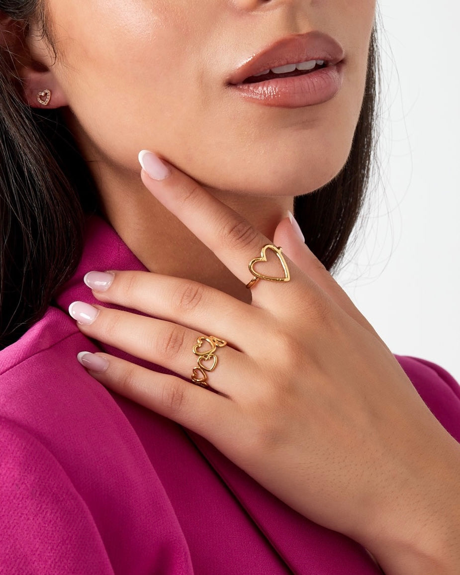 Onze Big Heart Ring Gold is een gouden ring in de vorm van een hart. De ring is gemaakt van roestvrij staal en verkleurt dus niet! De ring is one size en is verstelbaar.