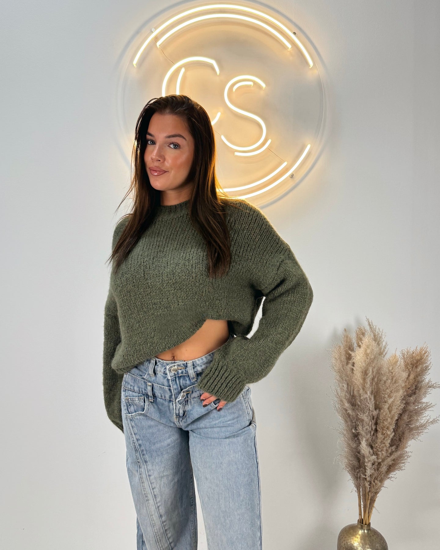 Cozy knit sweater khaki green