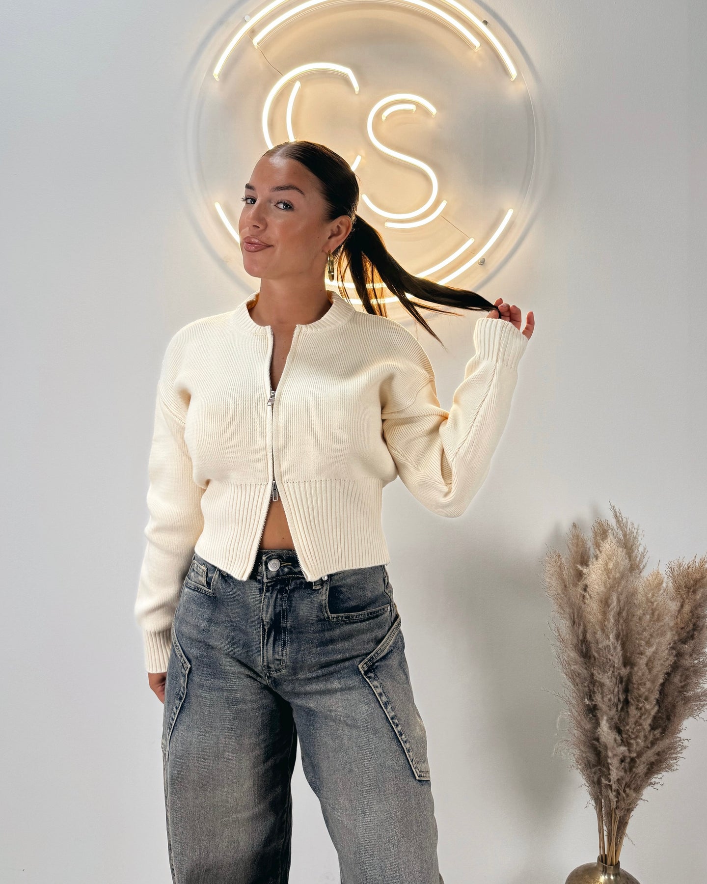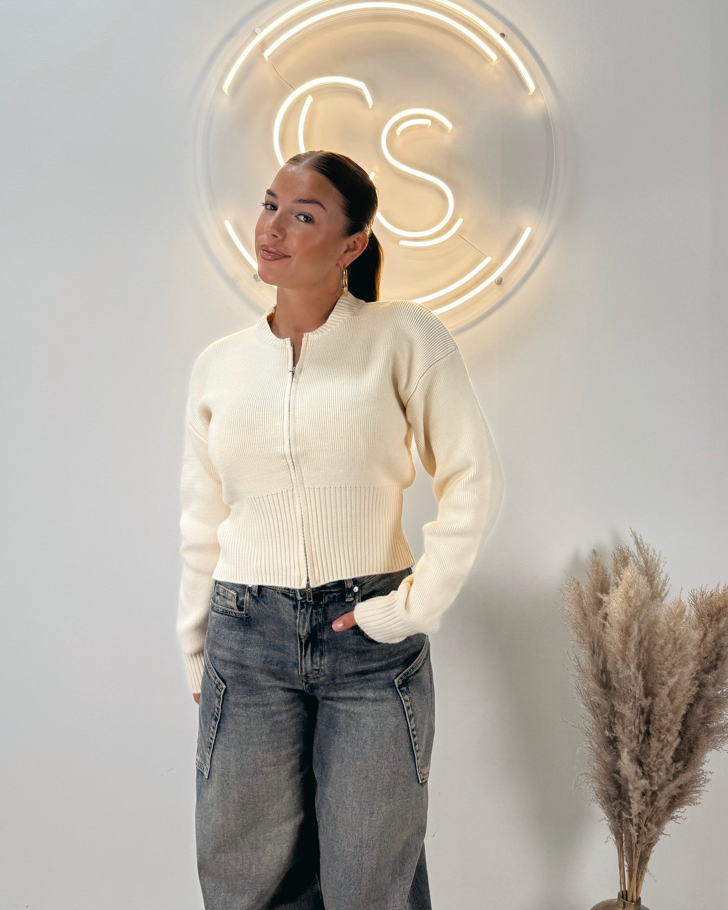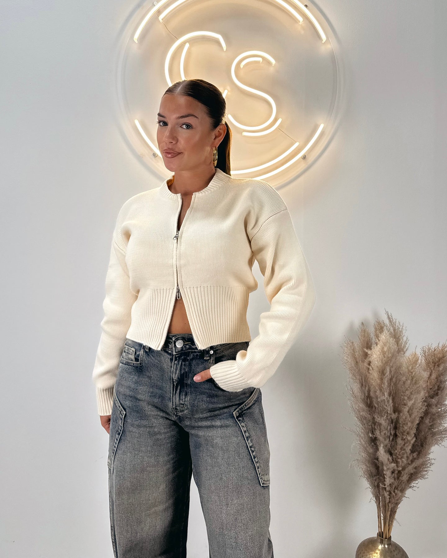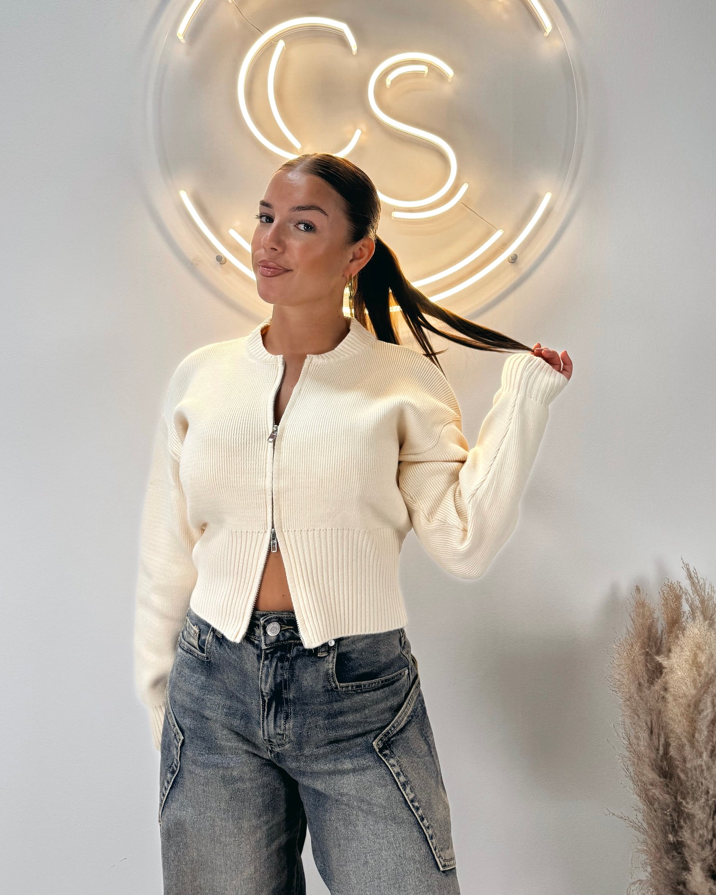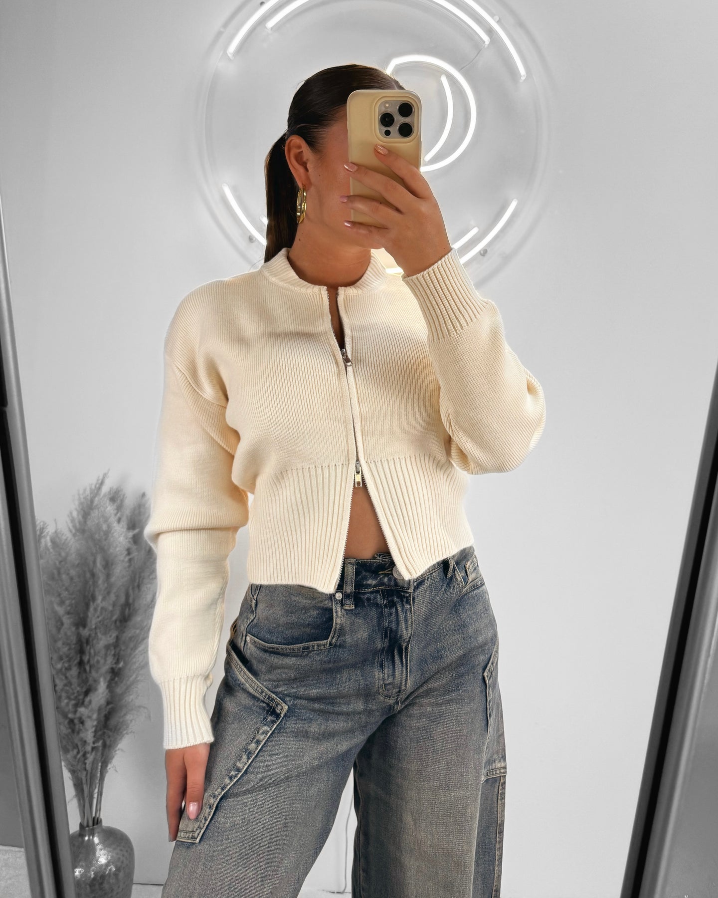Zipper cardigan beige