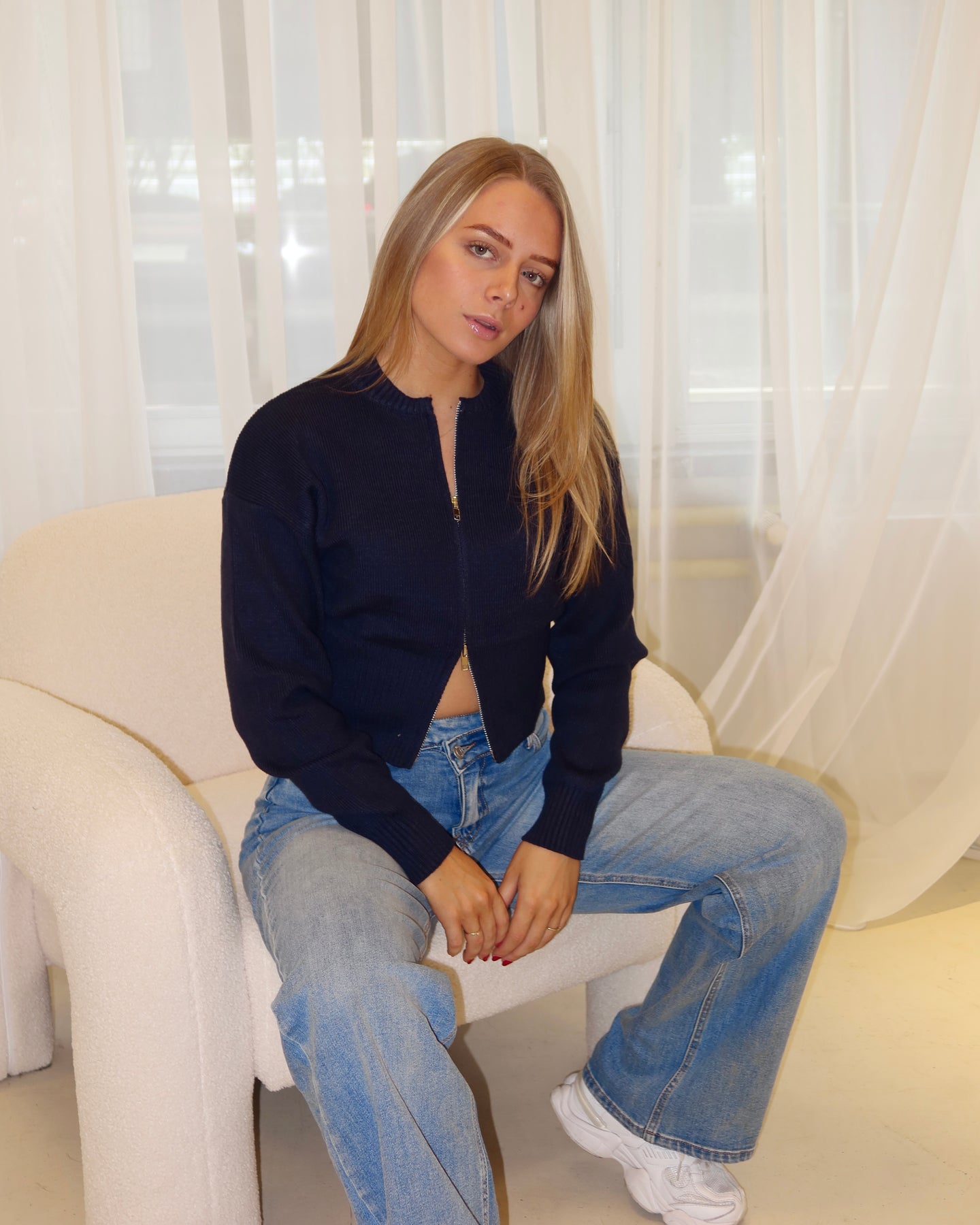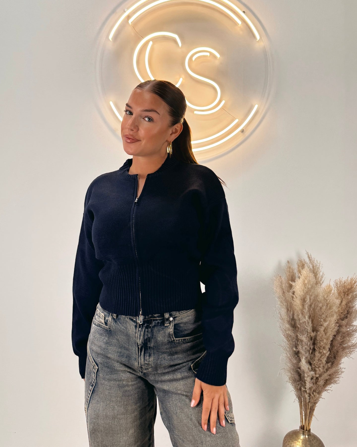 Zipper cardigan navy blue