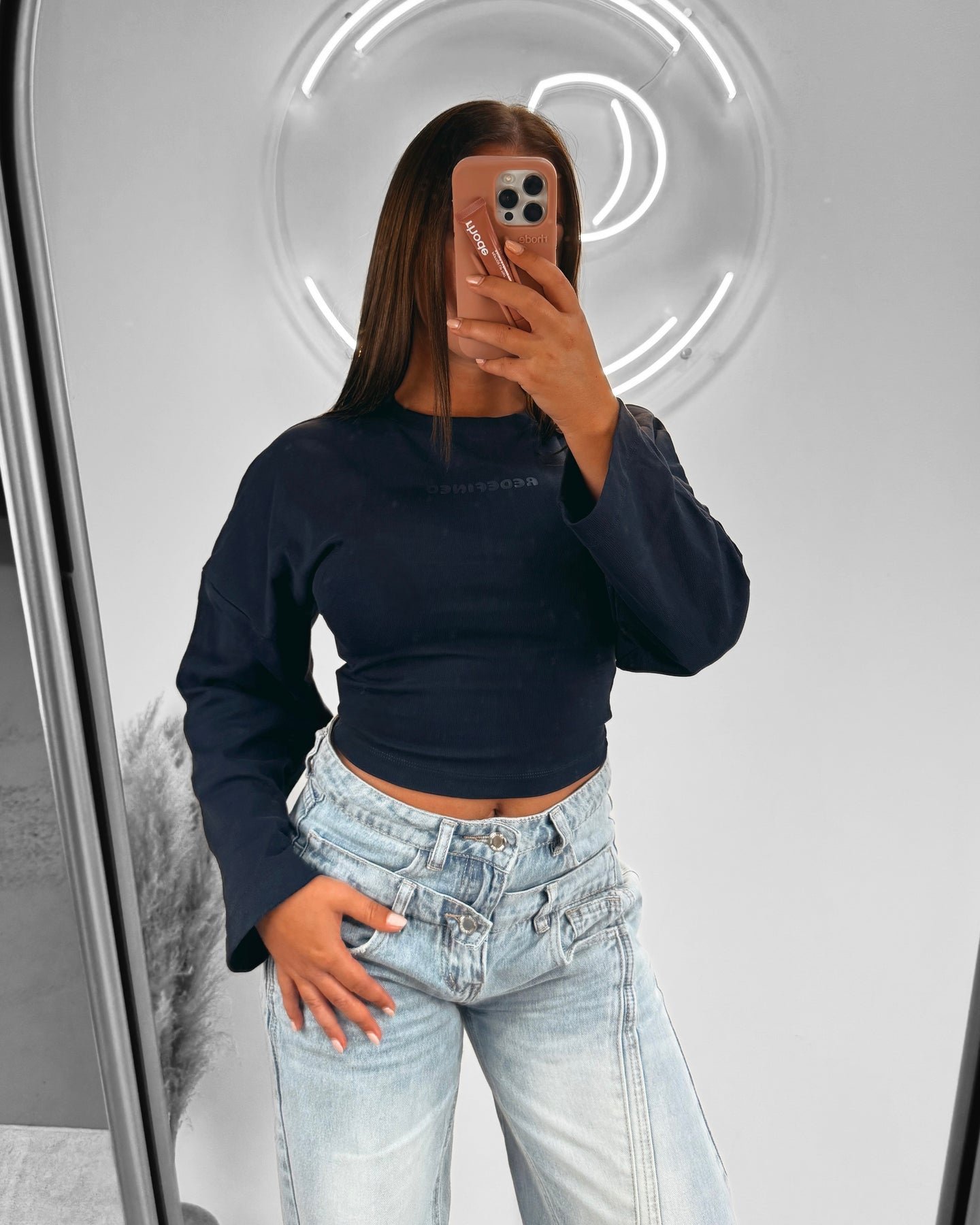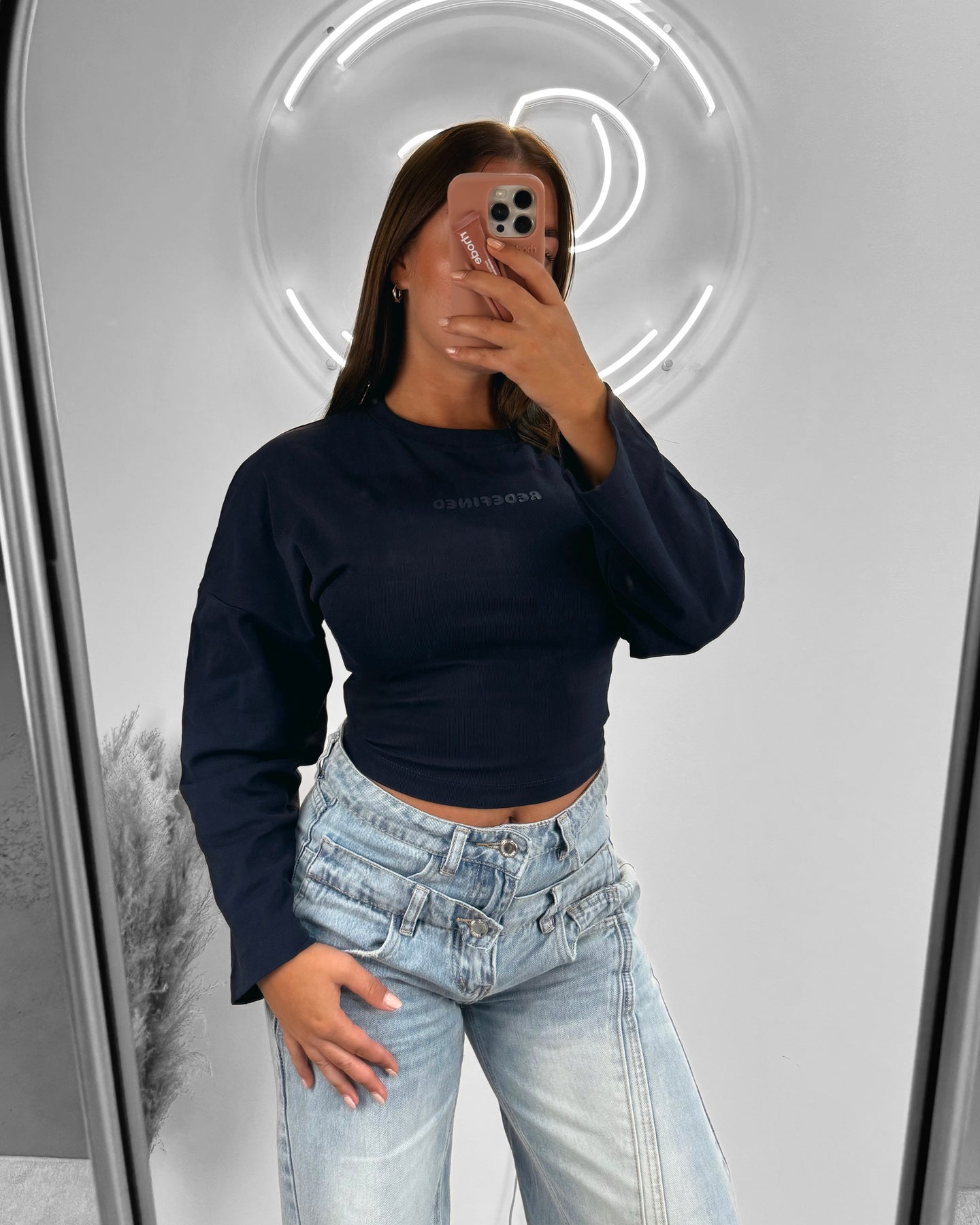 Redefined snatched long sleeve top navy blue