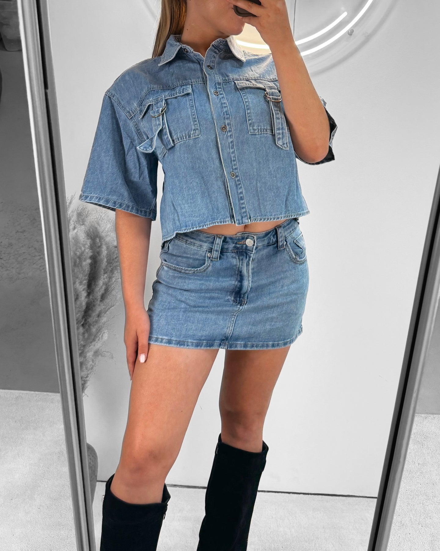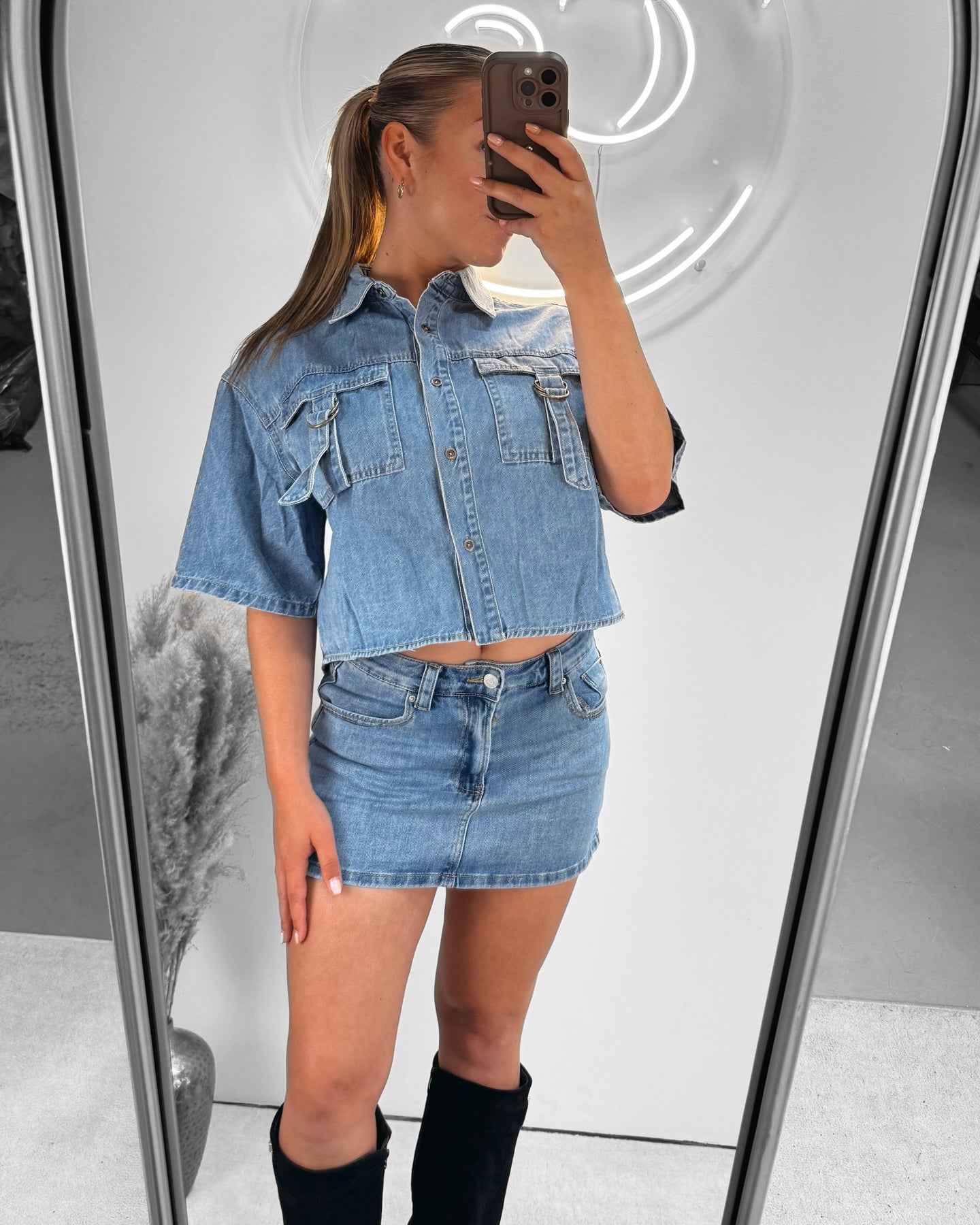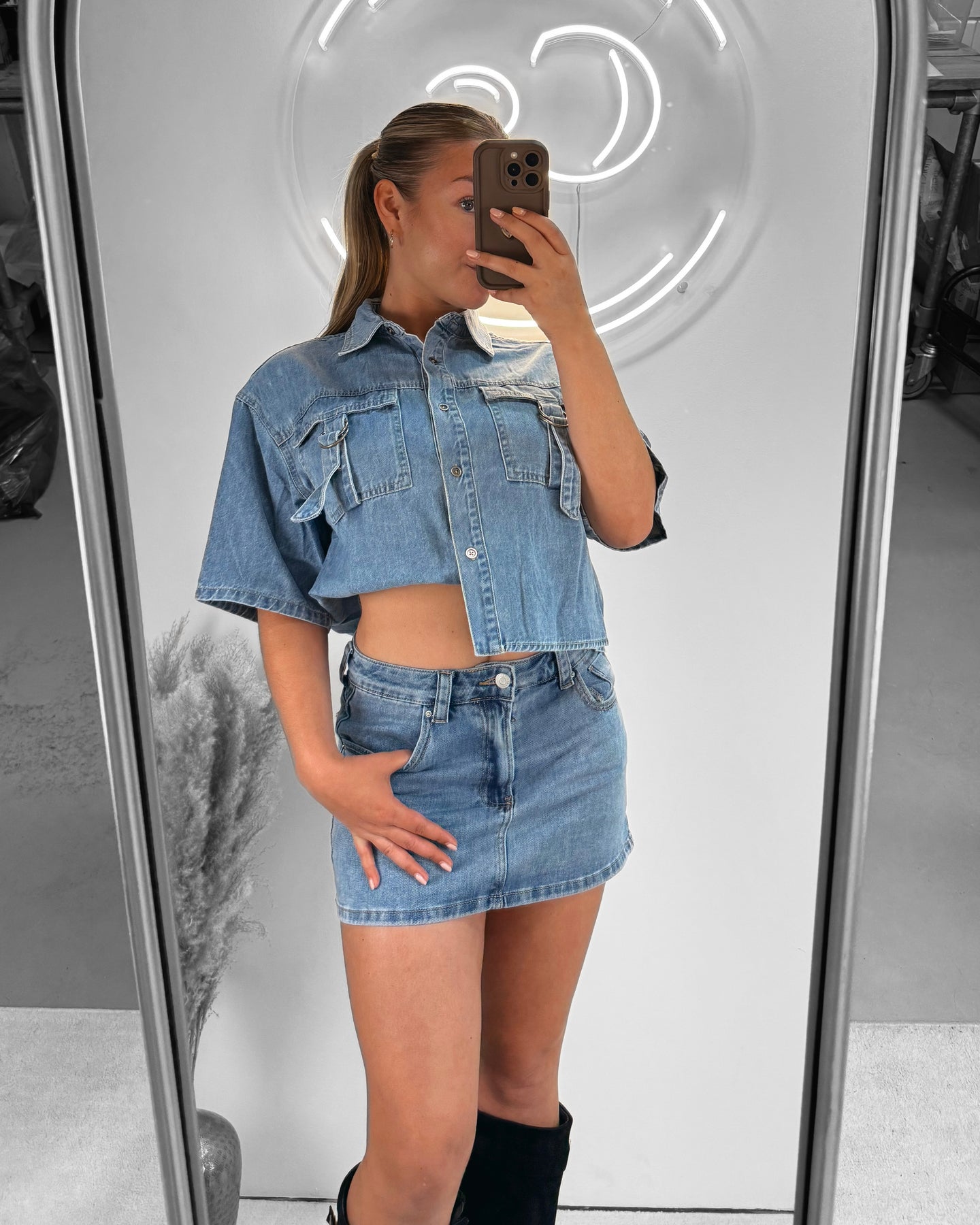 Normale prijs €44,95 Verkoopprijs €24,95 Bespaar 44%Onze Denim Pocket Strap Top Blue is een losvallende top gemaakt van spijkerstof. De top heeft leuke zakken met bandjes als uitgangspunt. De bovenkant is te sluiten met knoopjes. Combineer deze top met onze jeans of skorts voor de perfecte combiset!