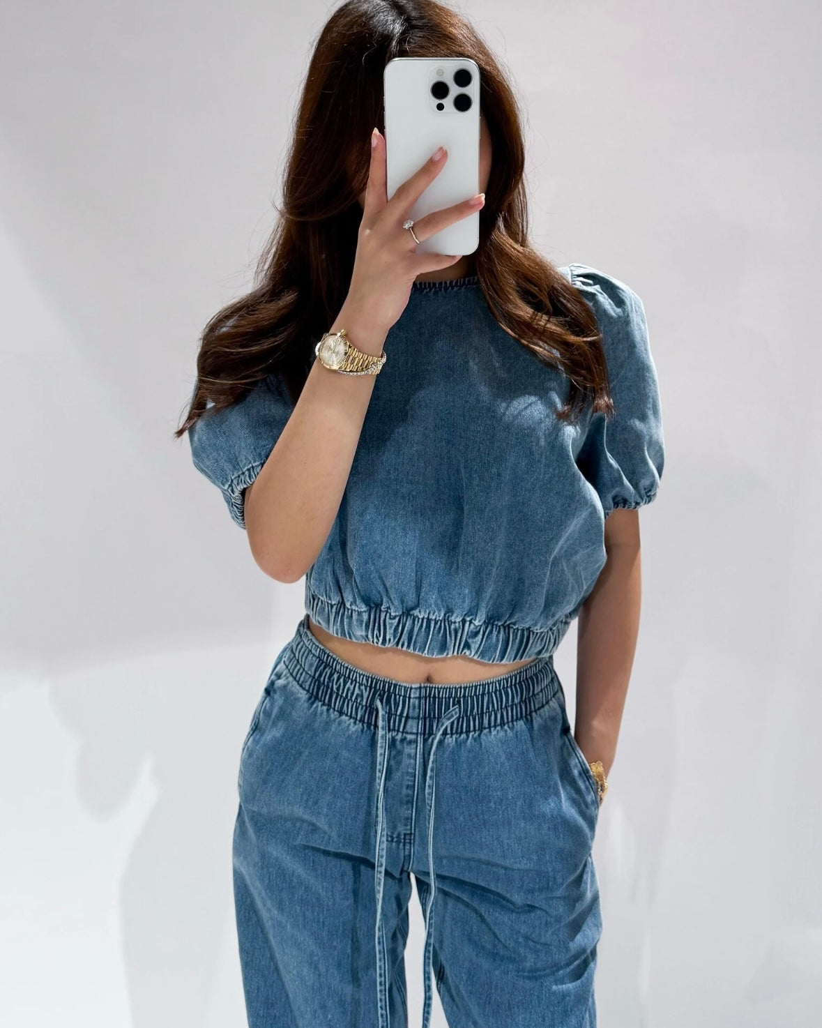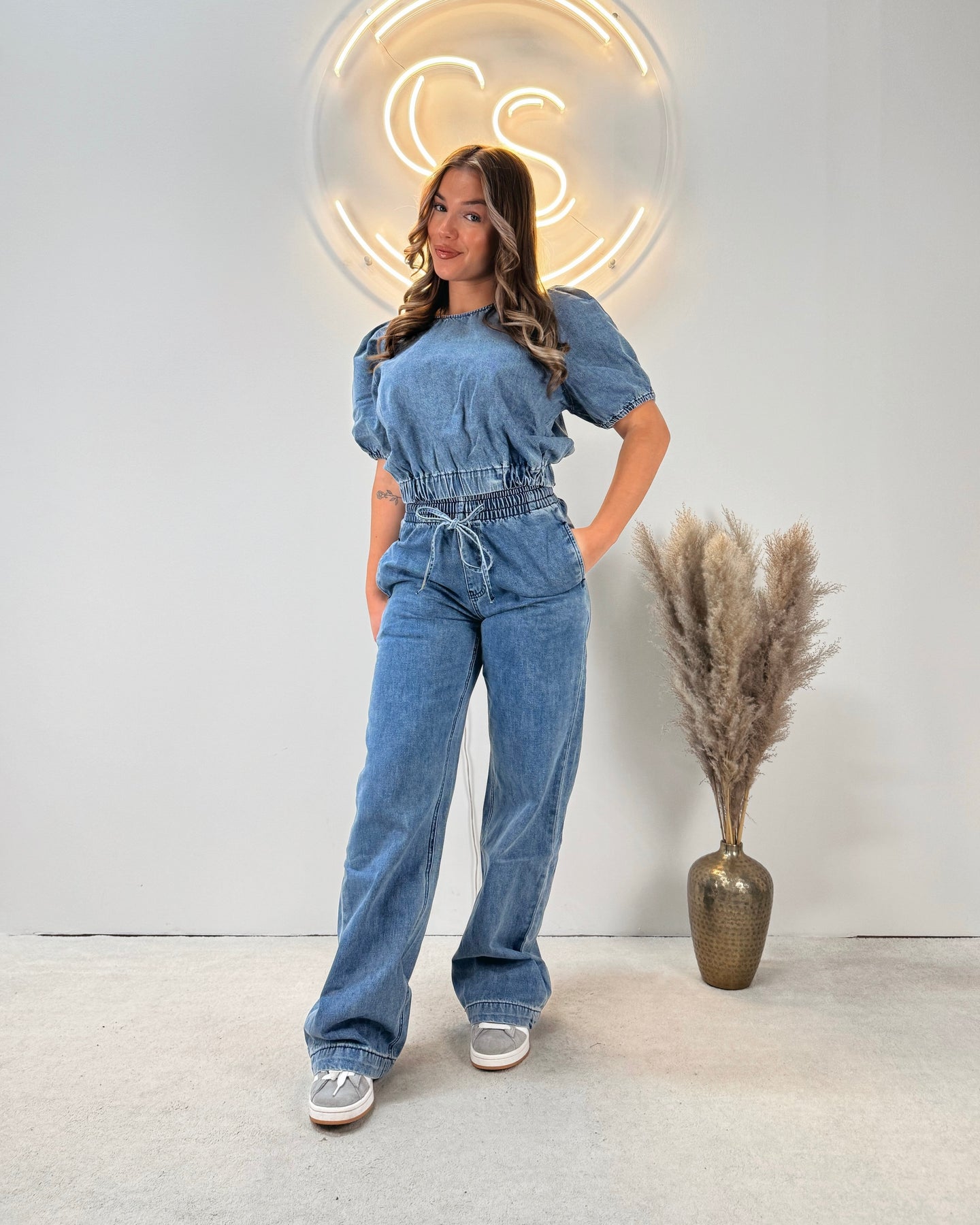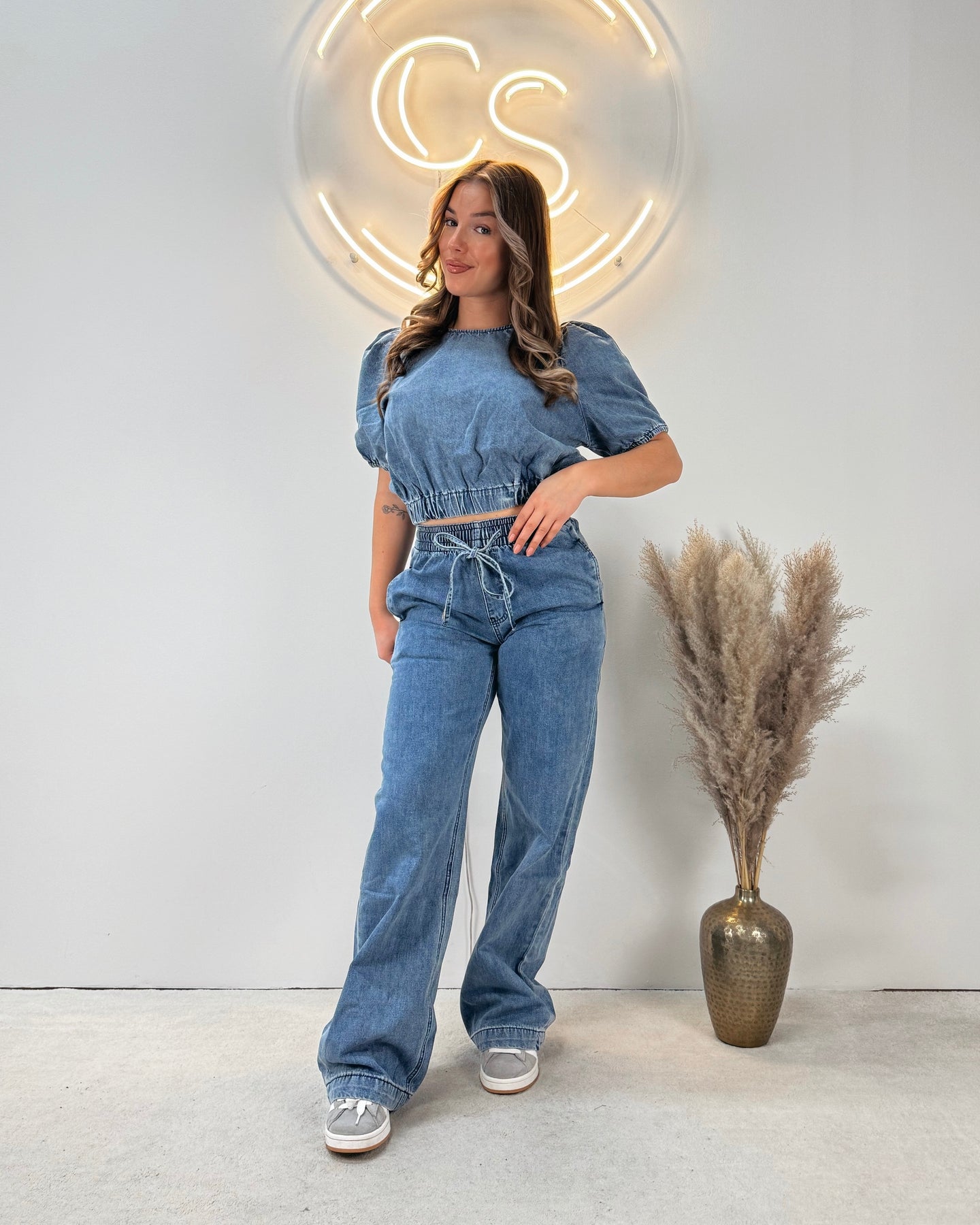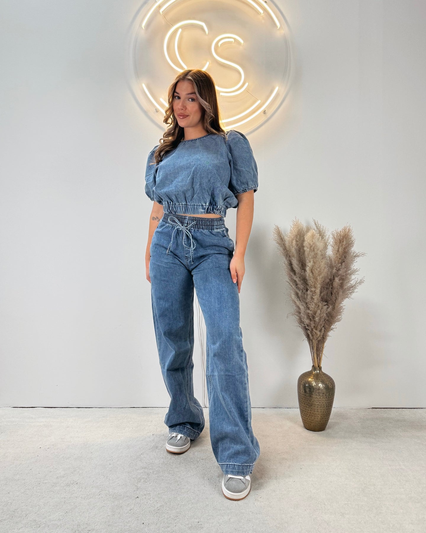 Onze Denim Puffed Top Blue is een schattig topje gemaakt van spijkerstof. De top heeft een pof effect en bevat veel stretch. De top zit in de nek en is te sluiten met een knoopje. Combineer deze top met onze Denim Straight Leg Jogger Pants voor de perfecte denim set!